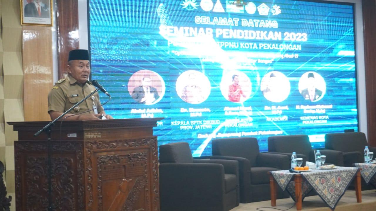 RILISJATENG.COM- Ikatan Pelajar Nahdlatul Ulama (IPNU) dan Ikatan Pelajar Putri Nahdlatul Ulama (IPPNU) Kota Pekalongan menyelenggarakan kegiatan Seminar Pendidikan dengan mengusung tema “Optimalisasi Digitalisasi Pendidikan dalam Menyongsong abad 21 sebagai Penguatan Karakter Bangsa”. Seminar tersebut dibuka oleh Wakil Walikota Pekalongan, H Salahudin dan turut dihadiri oleh Kepala Badan Pengembangan Teknologi Informasi dan Komunikasi Dinas Pendidikan dan Kebudayaan (BPTIK Dikbud) Provinsi Jawa Tengah, Siswanto, Kepala Bidang Pendidik dan Tenaga Kependidikan (PTK) pada Dinas Pendidikan Kota Pekalongan, Ahmad Husni, akademisi, M Jaeni dan Kepala Kantor Kementerian Agama Kota Pekalongan, Kasiman Mahmud Desky, berlangsung di Ruang Jlamprang Setda Kota Pekalongan, Senin (8/5/2023).